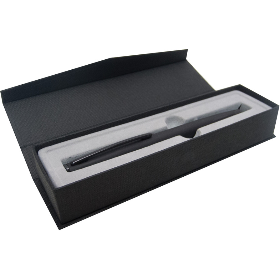 Roller cuerpo de color negro mate, clip con detalles en color negro brillante. Con estuche de cierre imantado. Destape electroplateado en la parte superior. Presentación en estuche con cierre magnético.