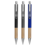Bolígrafo Metal. Cuerpo de aluminio en diferentes colores. Grip de bambú. Clip metálico. Pulsador y puntera plásticas color plata. Tinta negra. Decape color plata.