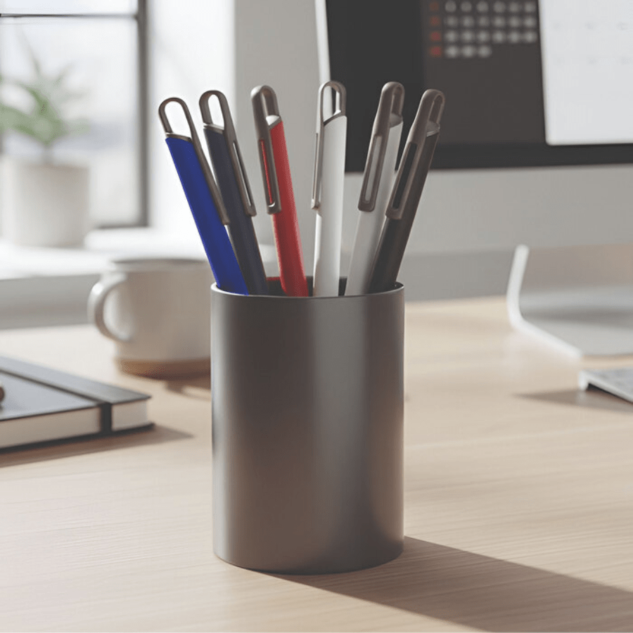 Boligrafo retráctil. Cuerpo metálico en diferentes colores. Acabado mate. Clip pulsador y puntera de color gris gun metal.