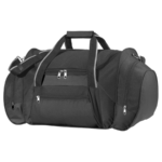 Bolso de viaje o deportivo. Bolsillo frontal y compartimentos laterales externos con cierre. Apertura superior completa con cierre. Herrajes metálicos. Correa regulable y desmontable con hombrera de goma. Manijas con velcro. Soporta hasta 10 kilos de carga.