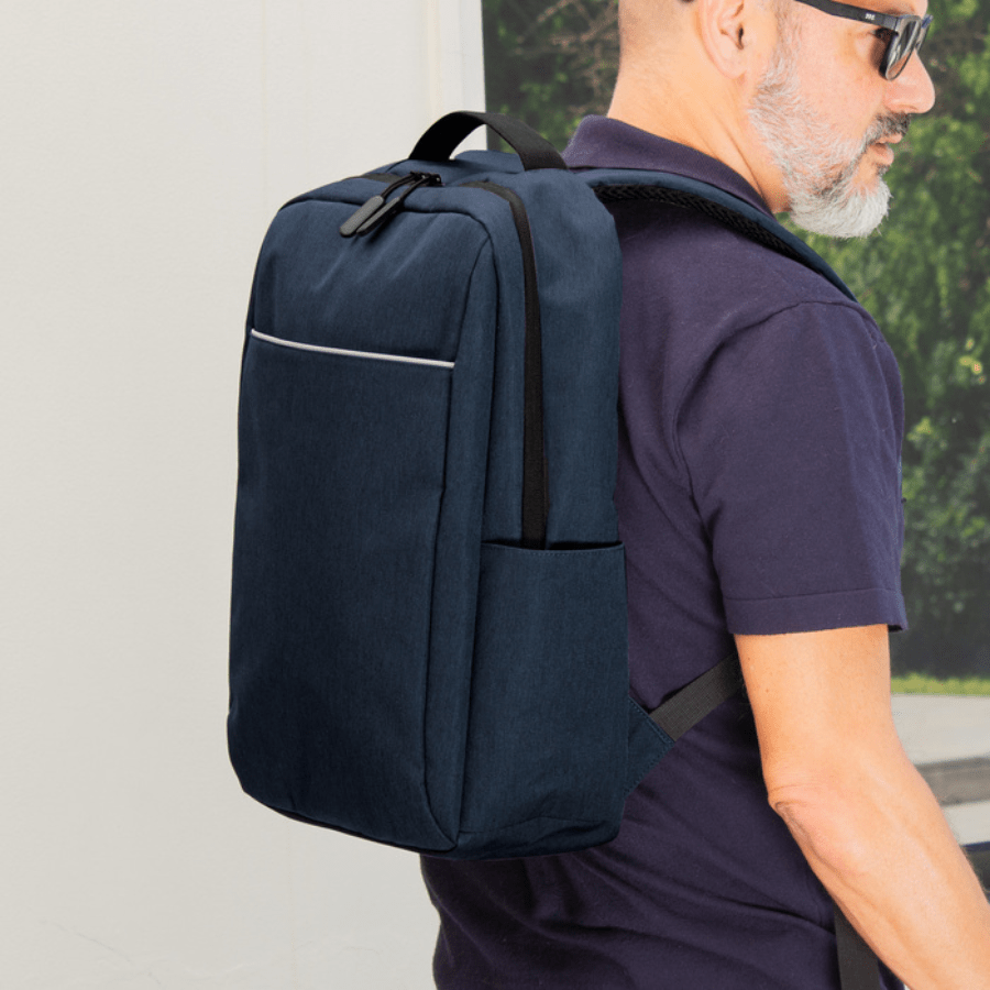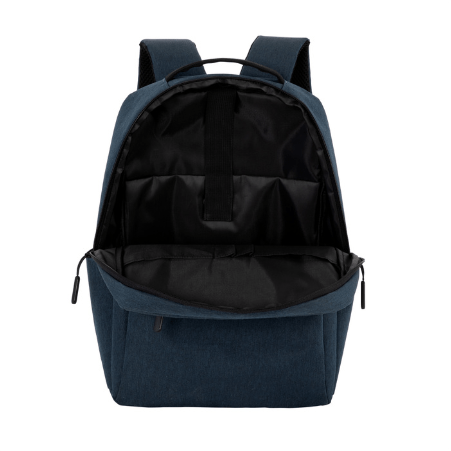 Mochila portanotebook de hasta 16 pulgadas. Compartimento principal con bolsillo posterior acolchado portanotebook con cierre de velcro y múltiples bolsillos para accesorios. Amplio bolsillo frontal horizontal con ribete reflectante. Dos bolsillos laterales portabotellas o accesorios. Asa superior reforzada. Correas ajustables y respaldo acolchados. Tira para sujetar la mochila en la manija extensible de un equipaje de mano. Tiradores de cierres plásticos texturados para un mejor agarre. Tejido ligero y resistente, de secado rápido.