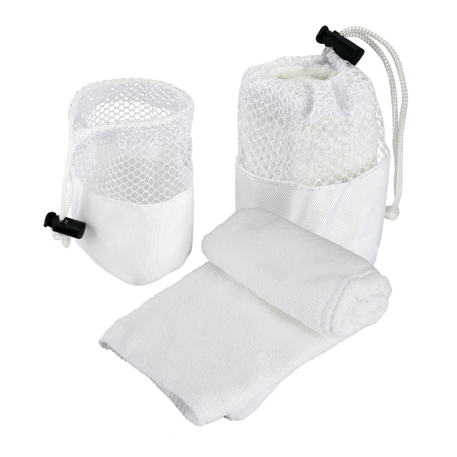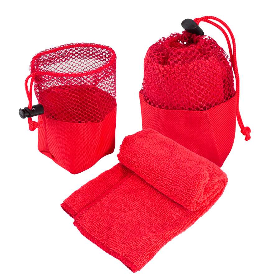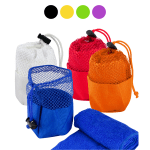 Toalla Facial de Microfibra. Presentación dentro de bolsito de poliéster con malla. Fácil de transportar y liviana, ideal para hacer deportes y para el Gimnasio.