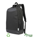 Mochila Porta-Notebook modelo «RPET». Fabricada en material reciclado RPET y poliéster 250D/PVC. Capacidad 20 litros, tamaño 29 x 48 x 14.5 cm. Incluye compartimento interior reforzado y acolchado para Laptop, bolsillo delantero y 2 bolsillos laterales con malla.