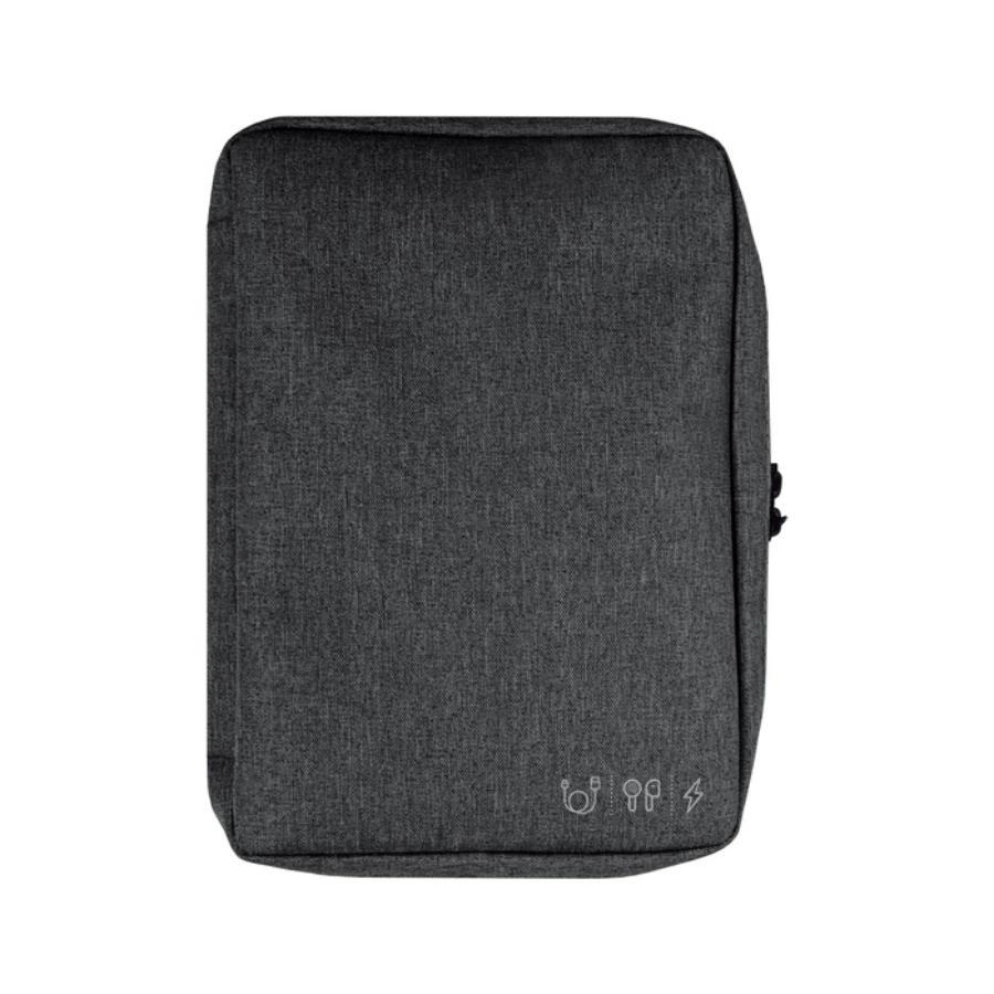 Organizador para cables y accesorios. Cuenta con dos bolsillos de red con cierre. 4 elásticos que permiten arrollar y guardar los cables, 1 elástico porta bolígrafo y 2 elásticos amplios. NO INCLUYE ACCESORIOS.