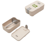 Contenedor de alimentos realizado en PP y Wheat Straw, pasta de paja de trigo, un material sustentable que reduce el consumo de plásticos vírgenes. Posee panel divisor interno móvil, para colocar diferentes alimentos. Tapa con traba y espacio para apoyar tenedor.