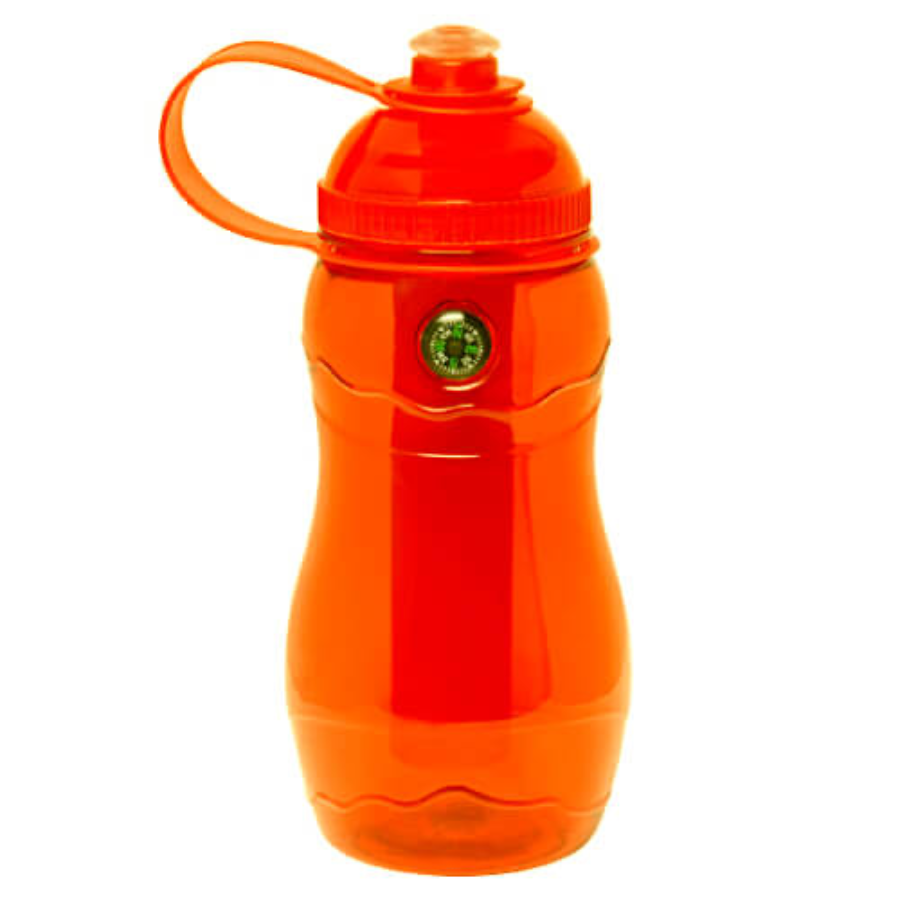 Caramayola plástica con cilindro extraíble de material cooler para refrigerar líquidos. Tapa rosca y boquilla deportiva de goma. Incluye brújula incrustada. Presentación en bolsa plástica dentro de caja de cartón negra.