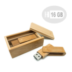 Pendrive giratorio de madera de bambú. Capacidad de 16 GB. Presentado en elegante estuche también de madera de bambú.