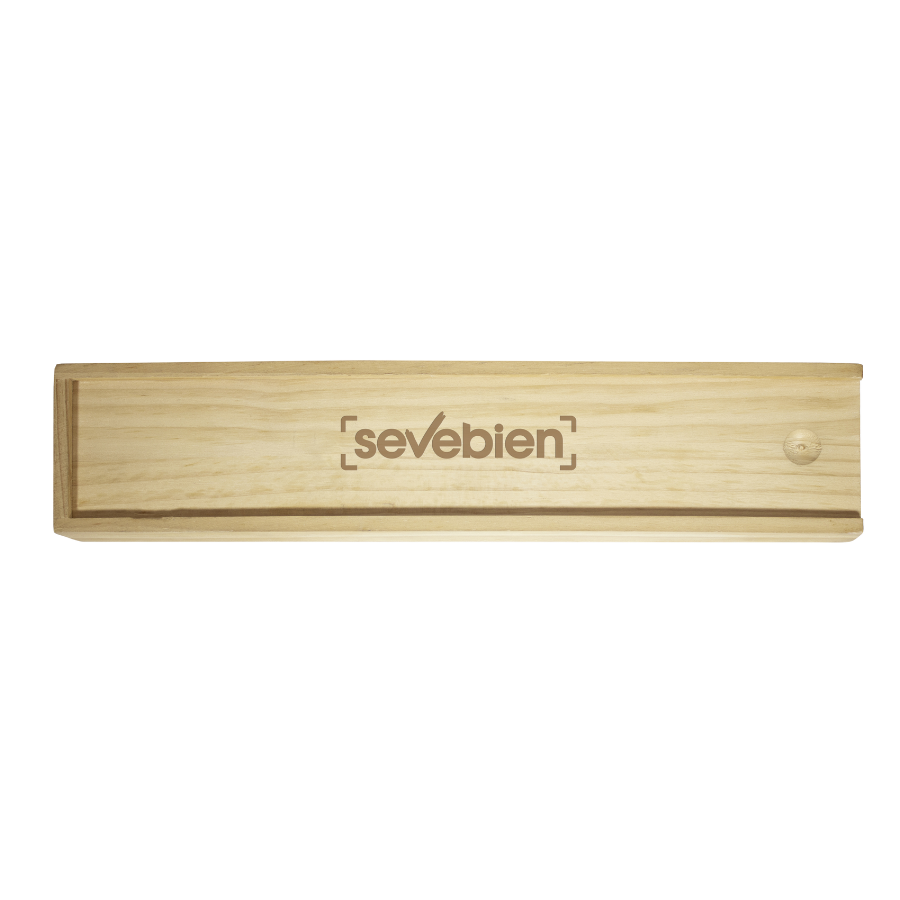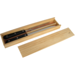 Juego de cuchilla y trincheta en caja de madera. Presentación en caja de regalo.