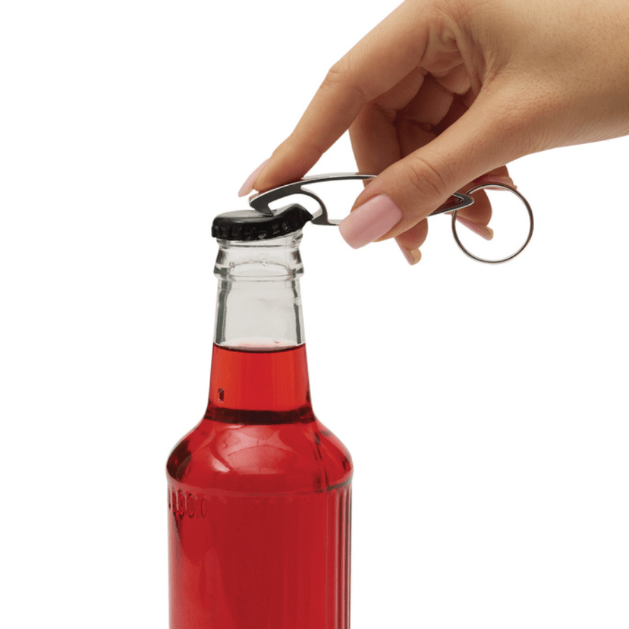 LLAVERO METÁLICO CON ABREBOTELLAS Tamaño 2,8 x 1 x 5 cm Metal.