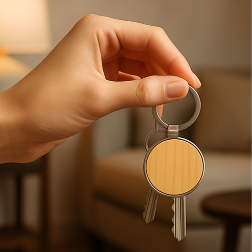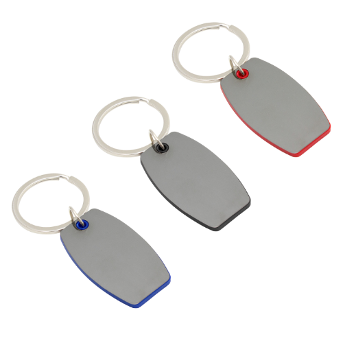 Medidas: 5 x 3 x 0,35 cm. LLavero de Ø 3,5 cm x 0,2 cm.